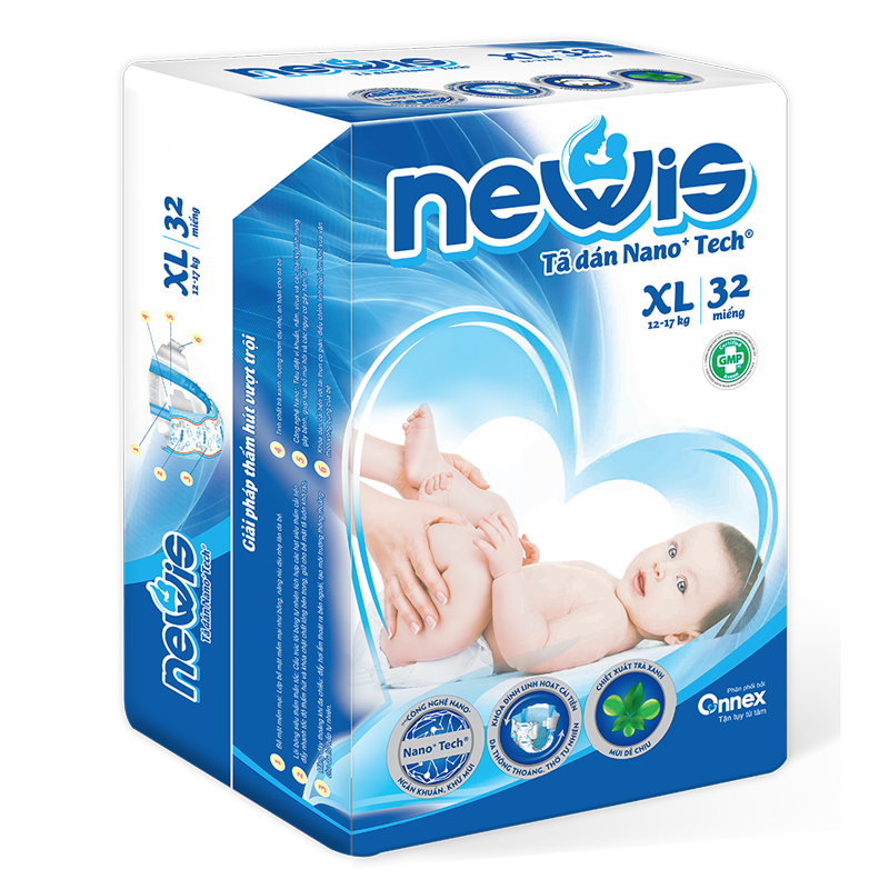 Tã dán Newis XL32 với công nghệ Nano tiên tiến, kháng khuẩn, chống hăm