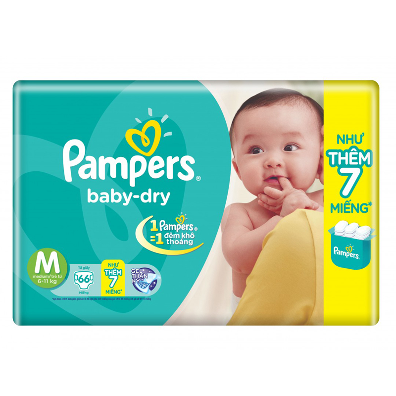 Bỉm Pampers M66 dành cho trẻ từ 6-11kg, gồm có 66 miếng/bịch. Sản phẩm Pampers với "Lõi thần kì" giúp cho da bé luôn khô thoáng suốt cả đêm, để bé yêu có được giấc ngủ vàng và không bị thức giấc giữa đêm. Với khả năng thấm hút 6 lần và giữ bề mặt da bé khô thoáng đến sáng.