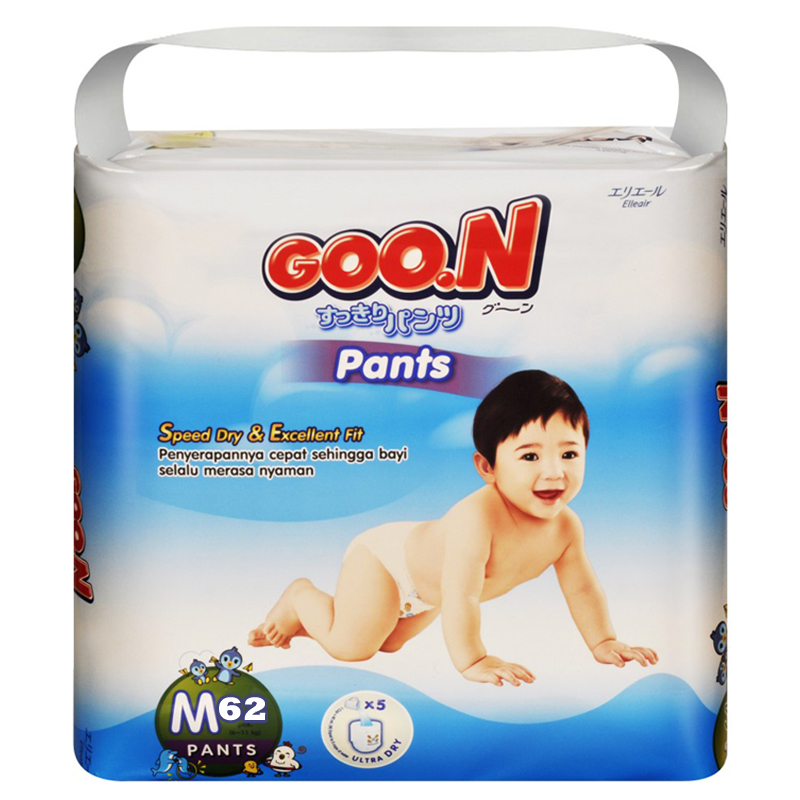 Bỉm Goon nội địa M62 với tính năng nổi trội là mềm mỏng, khô thoáng. Goon được thừa nhận là sản phẩm tốt nhất trong việc chống hăm da, bảo vệ làn da mềm mại của bé, quần giấy Goon đã được hầu hết các bà mẹ trên toàn nước Nhật công nhận.
