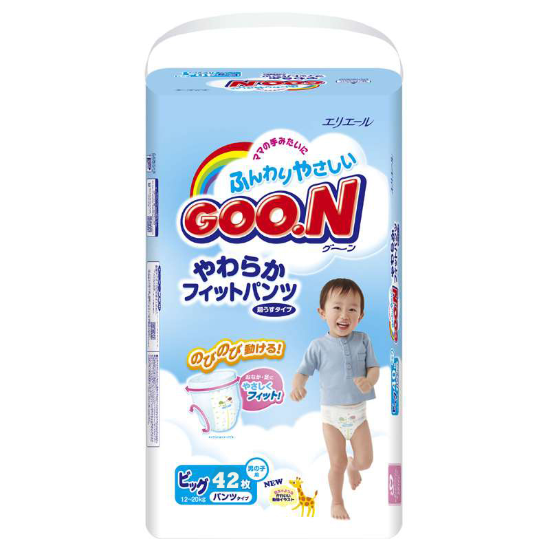 Bỉm Goon nội địa XL42 cho bé trai thấm hút vượt trội gấp 3 lần tã giấy thông thường.