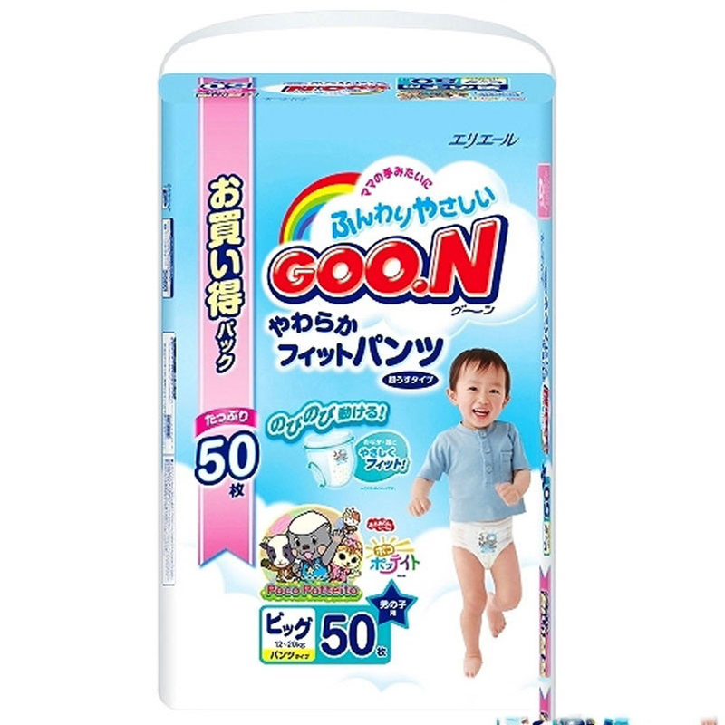Tã - bỉm Goon nội địa XL50 dành cho bé trai từ 12 -20kg, được sản xuất theo công nghệ tiên tiến của Nhật chính là giải pháp giúp bé luôn khô thoáng lại không làm gián đoán cuộc vui chơi hay giấc ngủ của bé. Sử dụng chất liệu tơ an toàn, mềm mịn, sản phẩm không gây hăm cũng như không làm dị ứng, đảm bảo bé luôn có cảm giác thoải mái và dễ chịu. Hơn thế nữa, với hệ thống chống tràn hiệu quả, tã giữ cho bé luôn khô thoáng tuyệt đối.