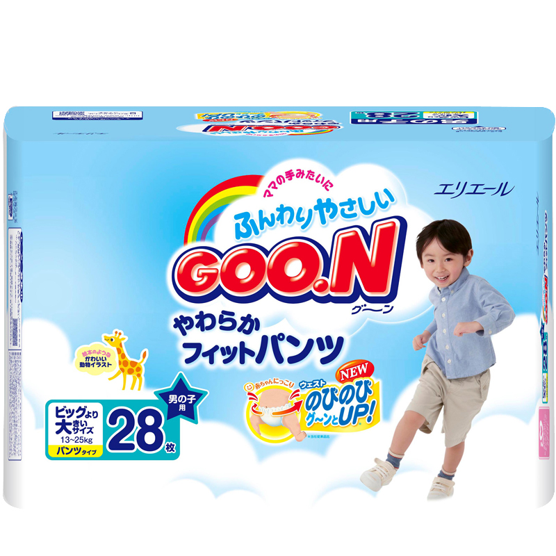 Bỉm Goon nội địa XXL28 cho bé trai thấm hút vượt trội gấp 3 lần tã giấy thông thường.