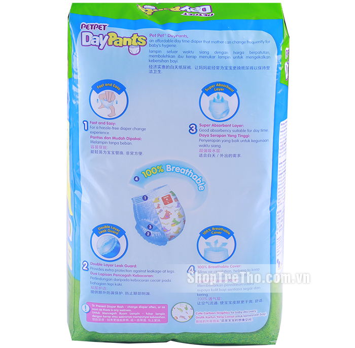 - Bỉm Petpet được làm từ vải không dệt với các đường dẫn không khí siêu nhỏ cho phép không khí lưu thông dễ dàng, loại bỏ ngay lập tức tình trạng ẩm ướt để da bé luôn khô ráo.