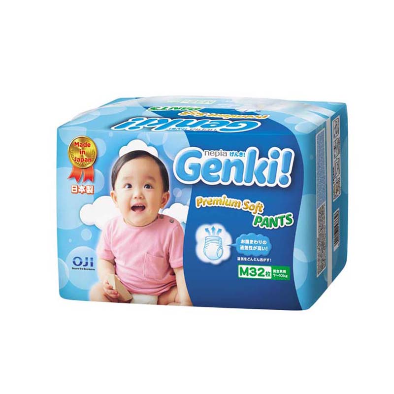Bỉm quần Genki M32 với khả năng thấm hút cao và thiết kế giúp bé thoải mái tối đa, linh hoạt cho mọi vóc dáng. Bỉm được sản xuất theo công nghệ Nhật Bản với thiết kế tiên tiến, độ thấm hút cao nhưng mỏng hơn 25% so với tã bỉm thông thường.