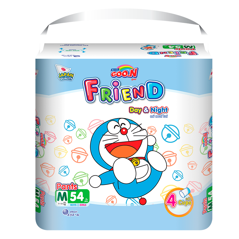 Bỉm quần Goo.N Friend M54 (7-12kg) được thiết kế với công nghệ mới giúp thấm hút nhanh chóng, cho bé khô thoáng cả ngày lẫn đêm. Tã ngoài việc giúp bé thông thoáng thoải mái còn mang đến vẻ ngoài đáng yêu nhờ những hình in ngộ nghĩnh trên tã từ những nhân vật trong câu chuyện Doremon nghịch ngợm.