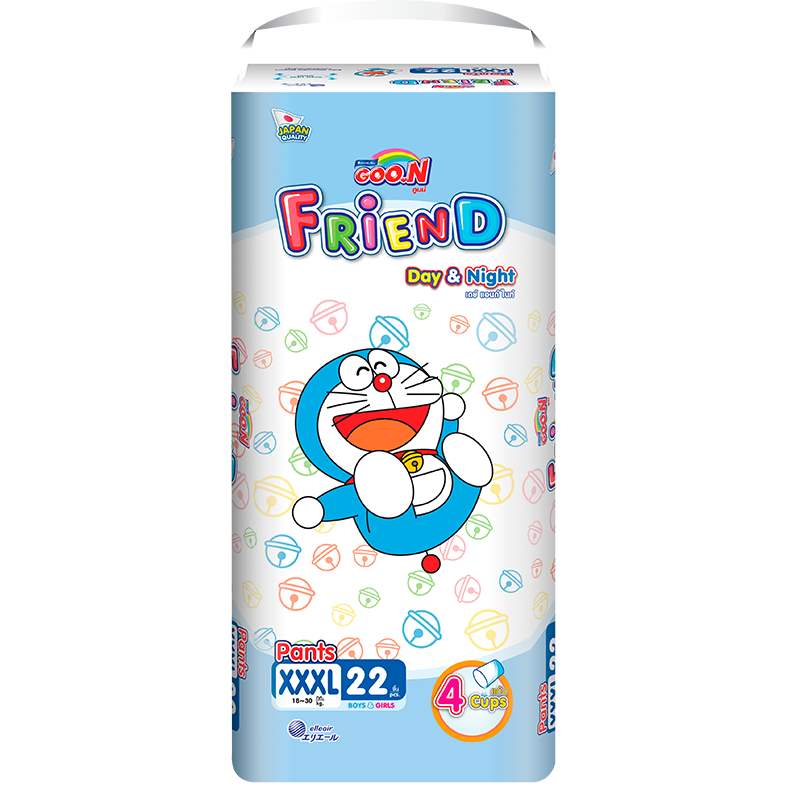 Bỉm quần Goo.N Friend XXXL22 cho bé từ 18 – 30kg GOO.N Friend sẽ đồng hành cùng mẹ lâu hơn nữa trong quá trình phát triển của bé yêu. Tã quần mới với cải tiến tốt hơn, tăng tới 30% khả năng dãn rộng ở vòng hông, phù hợp với mọi vận động của bé.