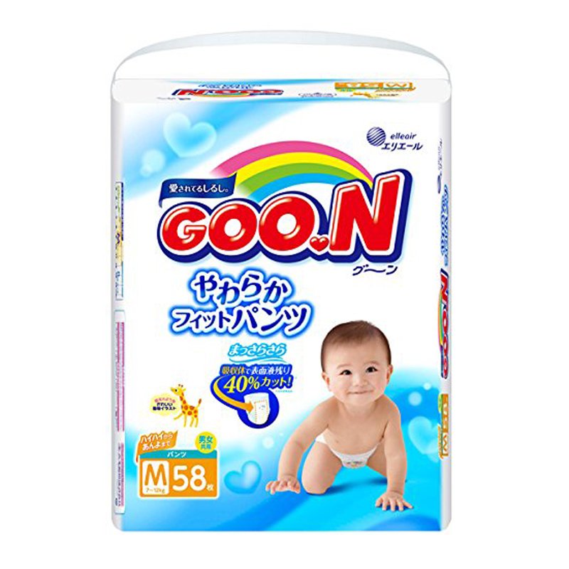 Bỉm Goon nội địa M58 với tính năng nổi trội là mềm mỏng, khô thoáng. Goon được thừa nhận là sản phẩm tốt nhất trong việc chống hăm da, bảo vệ làn da mềm mại của bé, quần giấy Goon đã được hầu hết các bà mẹ trên toàn nước Nhật công nhận.