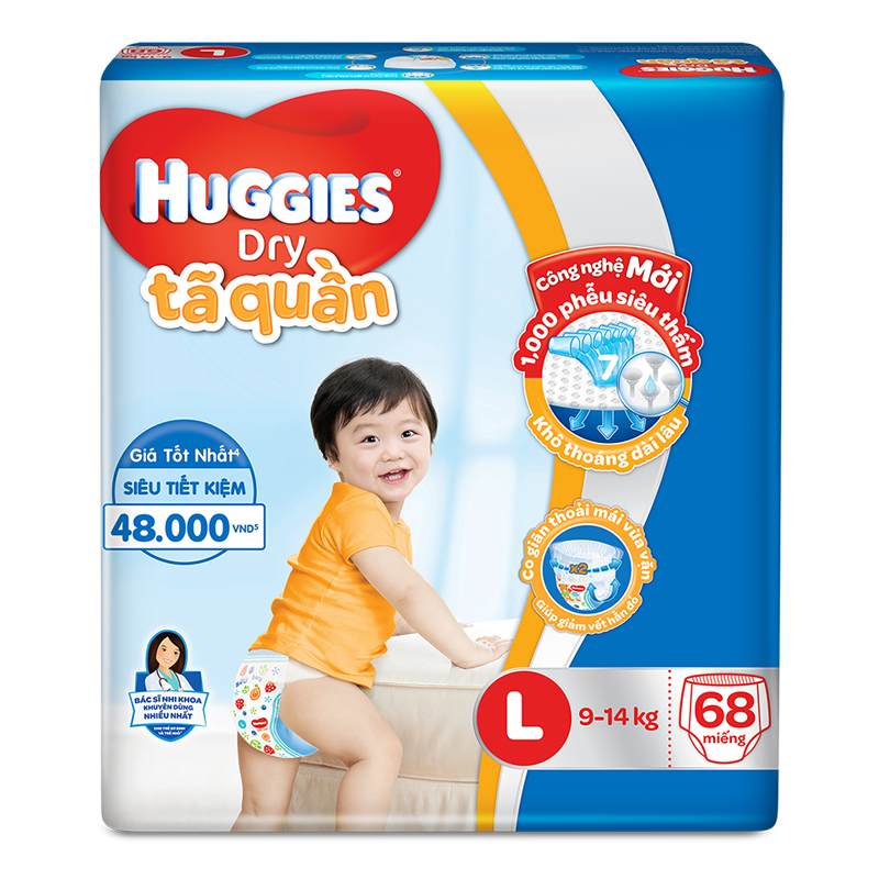 Tã quần Huggies L68 với thiết kế mới siêu mềm, siêu thoáng cho bé