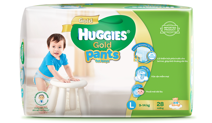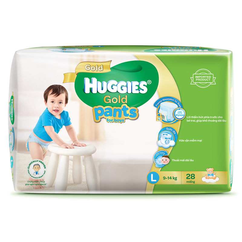 Tã quần Huggies Gold L28 với thiết kế chuyên dụng cho bé trai
