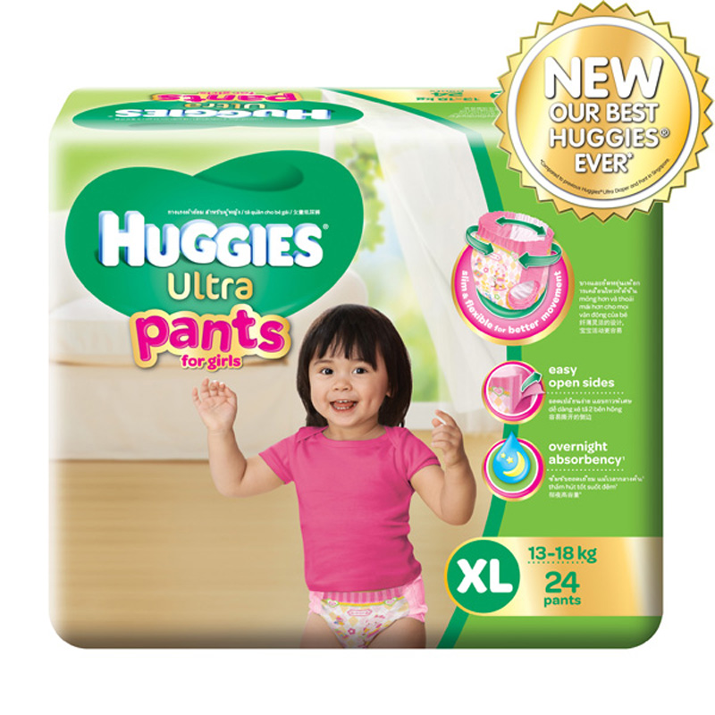 Tã quần Ultra Pants XL24 cho bé gái thiết kế gọn gàng với lưng thun co giãn tối đa, ngoài ra, hai mặt giống nhau cho phép mẹ mặc tã nhanh chóng như quần bình thường mà không cần phải lựa chọn mặt tã đúng. Sản phẩm là sự lựa chọn đầy tiện lợi chon các bậc bố mẹ.