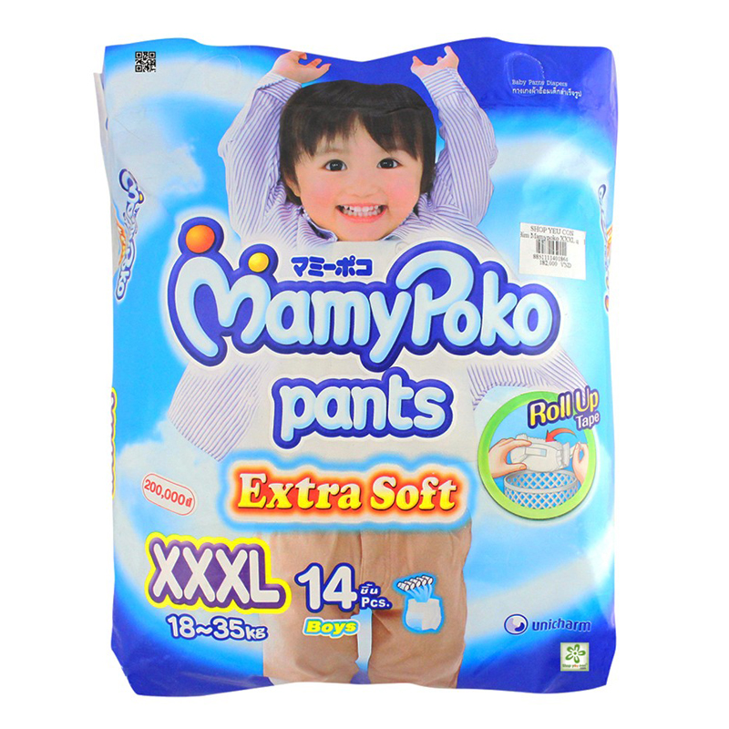 Bỉm quần Mamypoko XXXL14 với 2 loại dành cho bé gái và bé trai, được làm từ chất liệu cao cấp theo công nghệ Nhật Bản, an toàn tuyệt đối cho bé, cùng khả năng thấm hút cao tạo cho bé được khô ráo thoáng mát và dễ chịu trong thời gian vui chơi. Đai lưng thun co giãn và màng đứng chống tràn hai bên chân ôm vừa vặn, cho bé cảm giác dễ chịu trong mọi cử động.