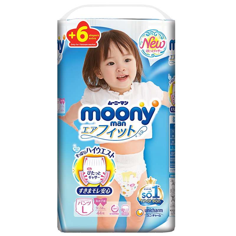 Khi dẫn bé đi du lịch xa nhà, không có thời gian thay liên tục bạn có thể chọn bỉm Moony Nhật Bản với chức năng thấm hút nhiều hơn, lớp bông mềm thoáng khí giúp bé luôn thoải mái, mẹ cũng cảm thấy vui vẻ hơn cả ngày. Bỉm quần moony L44 + 6 miếng (Gái) là sản phẩm cao cấp, được sản xuất theo công nghệ hiện đại nhất hiện nay, đáp ứng được tất cả những yêu cầu về chất lượng cũng như tiêu chuẩn về an toàn cho bé yêu của bạn.