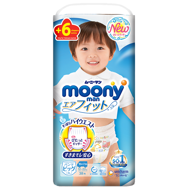 Tã - bỉm quần moony XL38 + 6 miếng (Trai) cho bé từ 12 -22kg