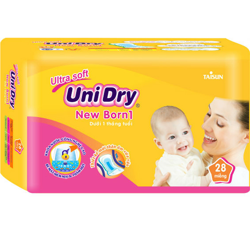Đối với mẹ, bỉm là đồ dùng được liệt kê hàng đầu trong danh sách những vật dụng không thể thiếu của bé.Và trẻ nhỏ thường có sức đề kháng rất kém trước các yếu tố tác động từ bên ngoài như môi trường, thời tiết. Da bé rất mỏng manh nên cần sự chăm sóc cẩn thận, chu đáo của mẹ yêu. Hiểu được điều đó Taisun Việt Nam đã cho ra đời Tã dán UniDry NewBorn 1 (28M), sản phẩm thực sự chất lượng, đảm bảo an toàn cho bé yêu của bạn.