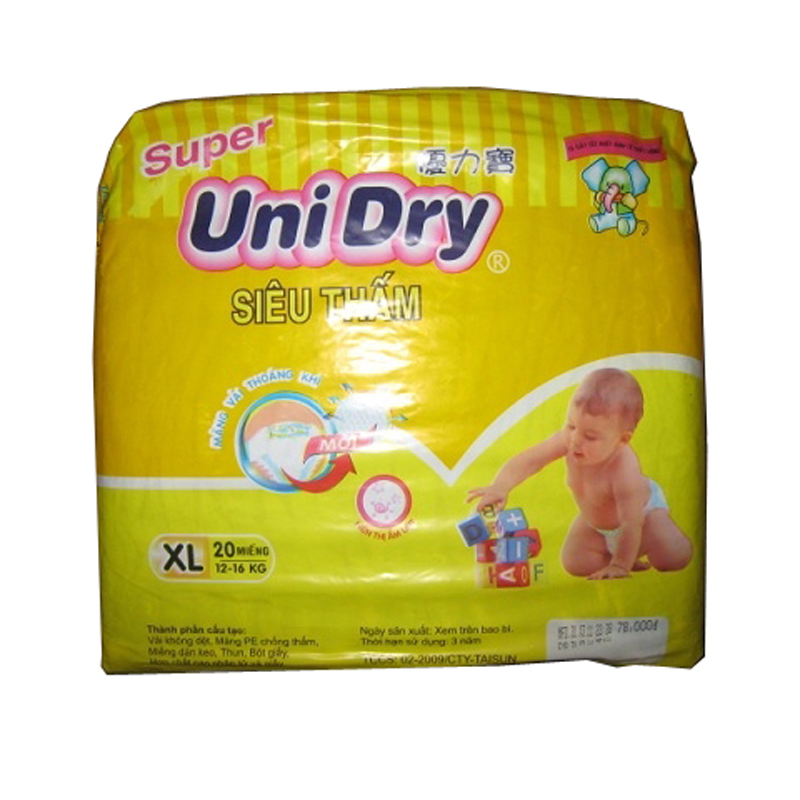 Tã dán UniDry XL20 được sản xuất với dây chuyền công nghệ hiện đại, sử dụng nguyên vật liệu chất lượng cao từ các nhà cung cấp hàng đầu thế giới, và đến tay người tiêu dùng với giá rất cạnh tranh. Sản phẩm với ưu điểm thấm hút nhanh, màng vải thoáng khí, không gây hằn và hăm da, giúp bé luôn khô ráo suốt cả ngày. Hơn thế nữa chức năng hiển thị ẩm ướt để báo hiệu thay tã thật thuận tiện khi sử dụng.