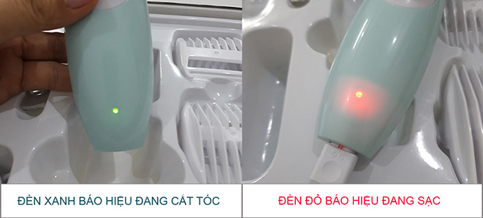 - Có 2 chế độ báo hiệu khi sạc hoặc khi cắt tóc cho bé: