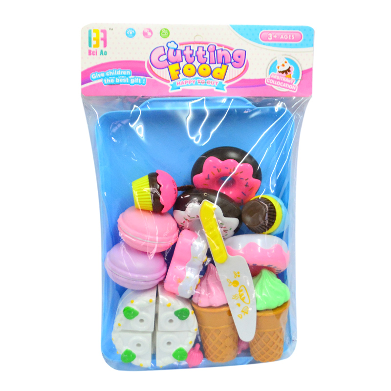 - Đồ chơi với thiết kế mô phỏng theo các món bánh ăn vặt phổ biến cho bé như: kem, bánh kem nhân socola cùng dao cắt bánh sinh động mang đến cho bé một bữa tiệc ấm cúng và hạnh phúc