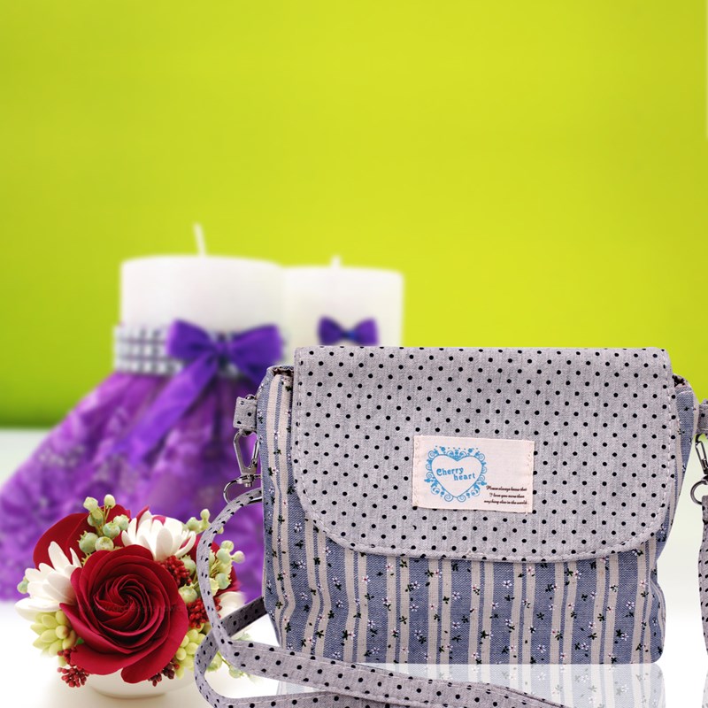 Điều khác biệt của chiếc túi đeo chéo handmade này đó là sự kết hợp của sắc xanh và vải chấm bi rất sang trọng. Sản phẩm có kích thước 22*18 cm là kích thước " siêu hợp lý " được rút ra từ trải nghiệm từ thực tế cùng dòng sản phẩm túi đeo chéo nhưng có những sản phẩm kích thước quá to hoặc có những kích thước lại quá nhỏ.