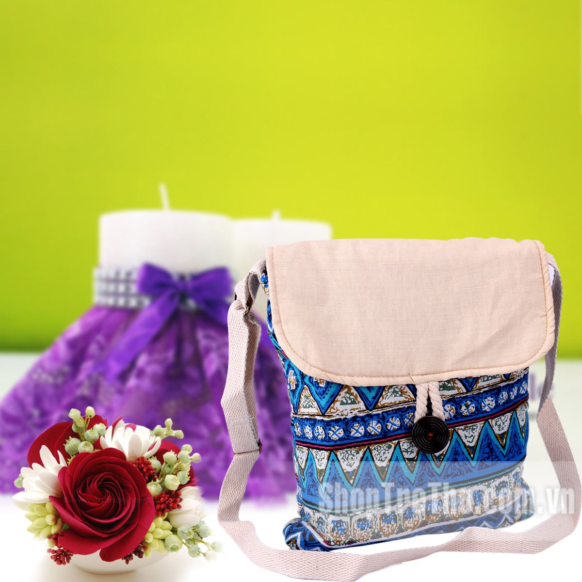 Túi đeo chéo handmade loại to T08 nằm trong bộ sưu tập những món đồ handmade sáng tạo. Handmade là những sản phẩm làm thủ công, tất cả các quá trình đều hoàn toàn được làm bằng tay. " Người khai hoang" ra đồ handmade là các sinh viên trường Mỹ thuật " tự làm " những đồ như vòng tay, dây buộc tóc, váy…cho riêng mình.