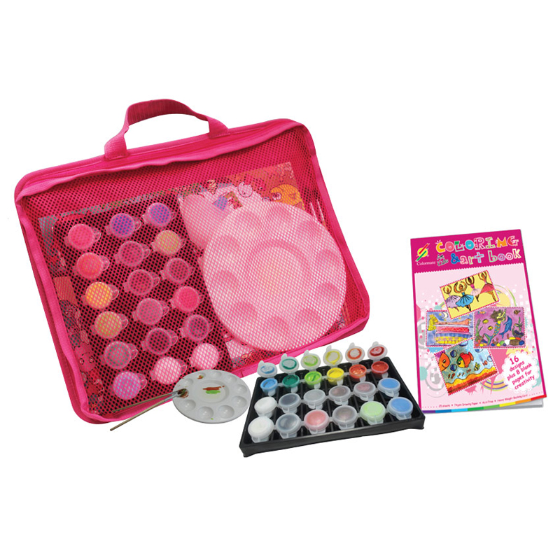 Túi màu vẽ bé gái M47 giúp trẻ phát huy tối đa khả năng hội họa, đồng thời giúp các bé phát triển khả năng sáng tạo, tư duy và trí thông minh của mình một cách hiệu quả nhất. Bộ sản phẩm bao gồm 47 chi tiết: 18 màu vẽ, 2 cọ vẽ + 24 tờ màu, 1 cuốn sách nghệ thuật cho bé gái, 1 chai nước và 1 bảng pha màu...tất cả được đựng trong túi màu hồng tiện lợi.