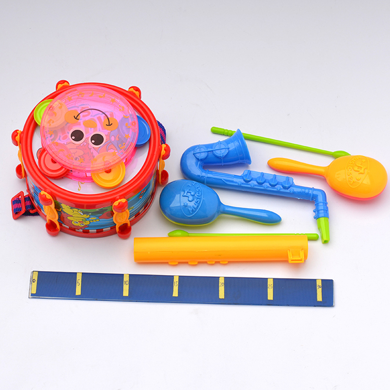 - Bộ sản phẩm gồm các món đồ chơi: trống, kèn, sáo... góc cạnh được bo tròn, không có ba via sắc nhọn