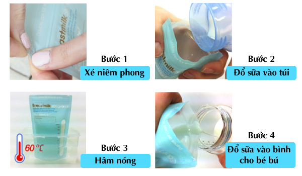Sử dụng nước ấm 40 độ C để rã đông sữa, không rã đông/hâm nóng túi sữa trong lò vi sóng.