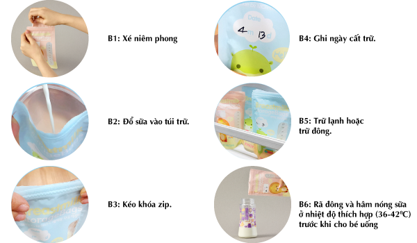 Rửa tay sạch sẽ trước khi sử dụng túi trữ sữa, không thổi vào túi.