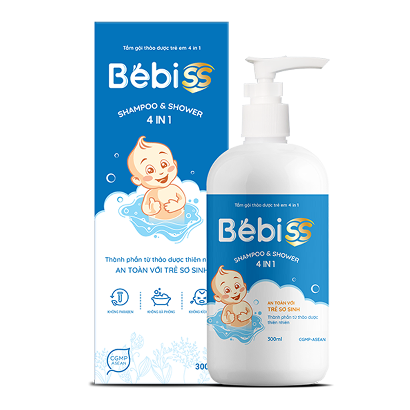 - Tắm gội thảo dược 4 in 1 Bebiss có tác dụng 4 trong 1 gồm: sữa tắm, dầu gội, dầu xả và dưỡng ẩm.