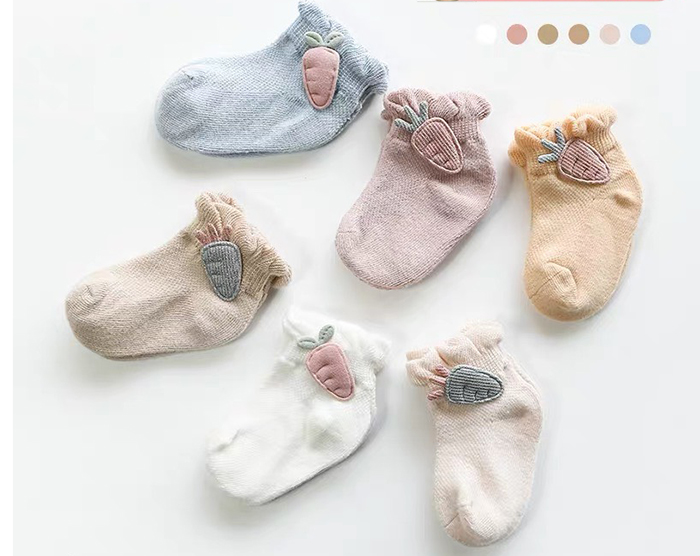 - Kiểu tât cổ thấp có gắn hình cà rốt, hoa quả ngộ nghĩnh, tạo điểm nhấn cho đôi chân của bé