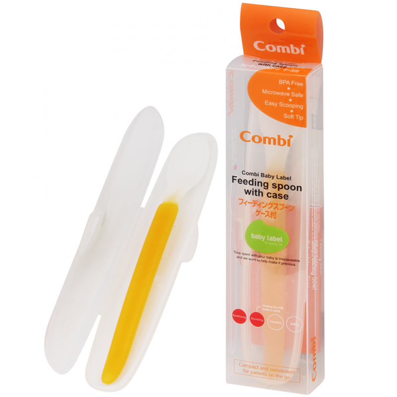Thìa ăn dặm cho bé Combi có hộp có chất liệu nhựa P.P không chứa BPA, đảm bảo an toàn vệ sinh, cùng thiết kế bo tròn để đảm bảo thìa không gây tổn thương vòm miệng của bé