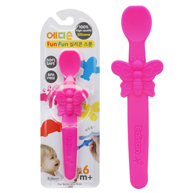 Thìa (muỗng) ăn dặm silicone Edison EC304083BH hình con bướm, sản phẩm đạt tiêu chuẩn an toàn vệ sinh, thiết kế của thìa (muỗng) ăn dặm hình con bướm Edison mầu hồng là phát minh sáng tạo khơi dậy niềm đam mê, thích thú của trẻ nhỏ trong bữa ăn.