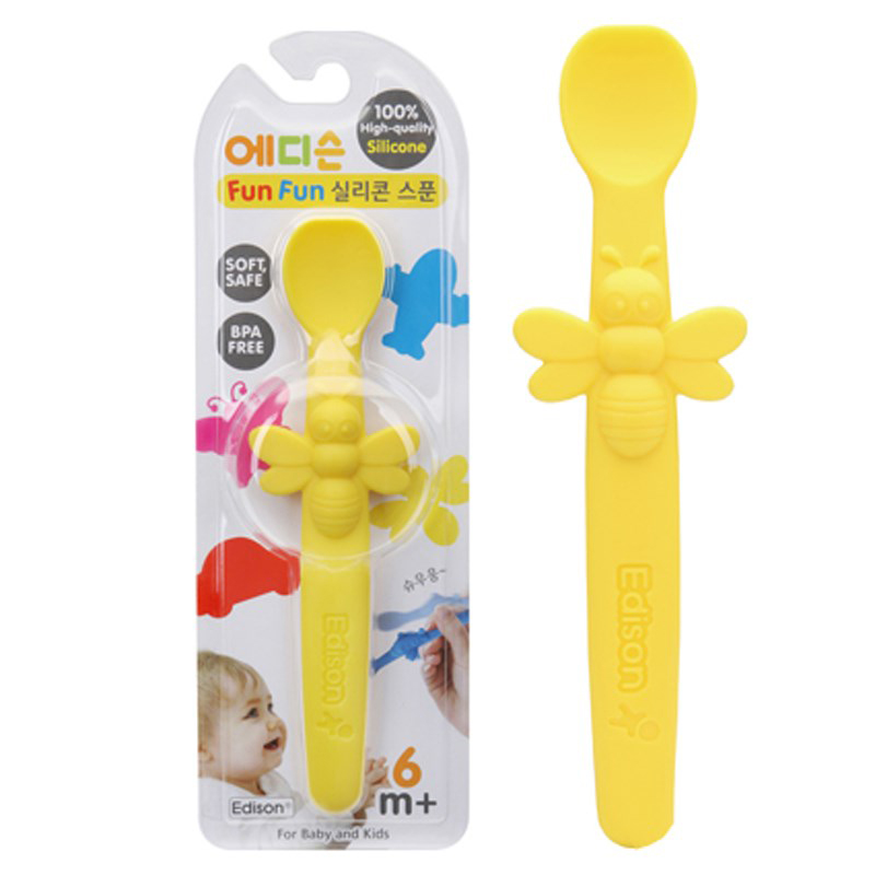 Đặc biệt thìa (muỗng) ăn dặm hình con ong Edison được thiết kế để cho bé ăn dặm khi miệng bé rất nhạy cảm.