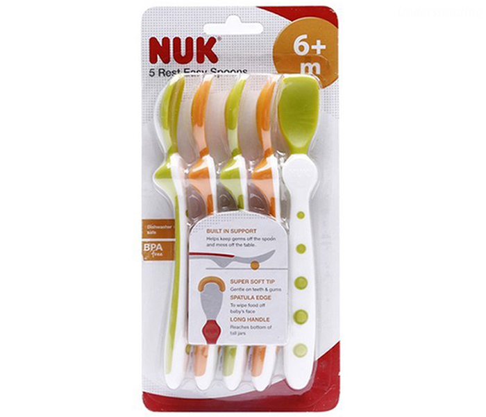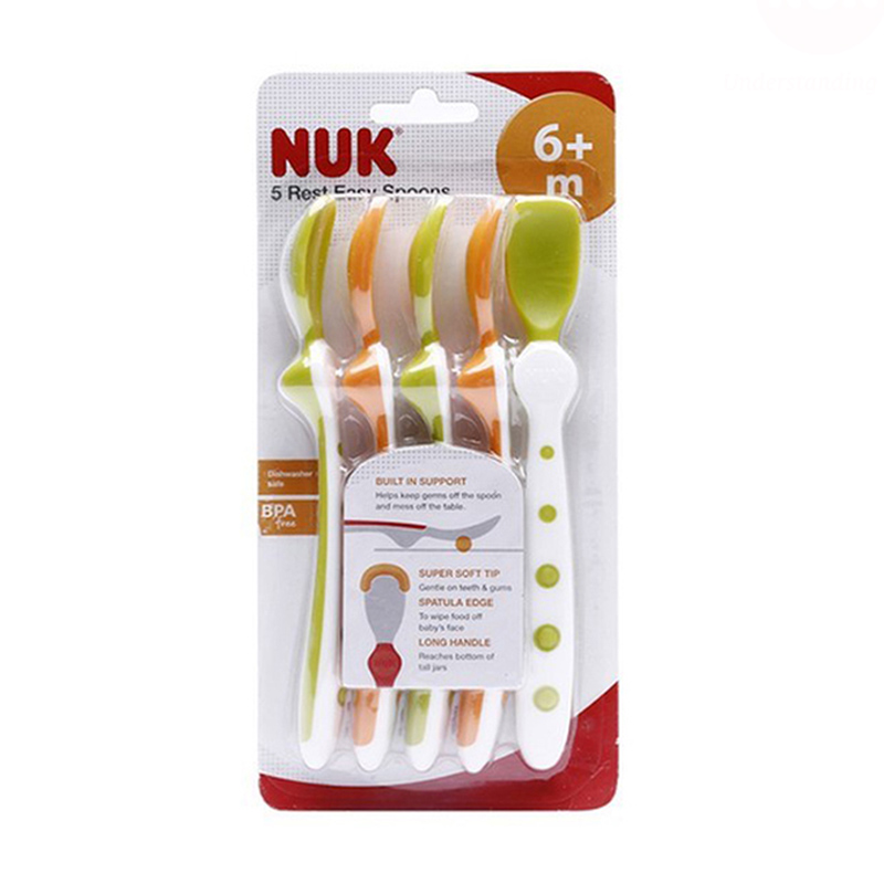 - Thìa mềm Nuk được phân tán trọng lượng đồng đều không làm cho bát/lọ bị lật khi vẫn để thìa bên trong. Thìa có màu sắc vui nhộn khiến cho bữa ăn trở nên thú vị hơn.