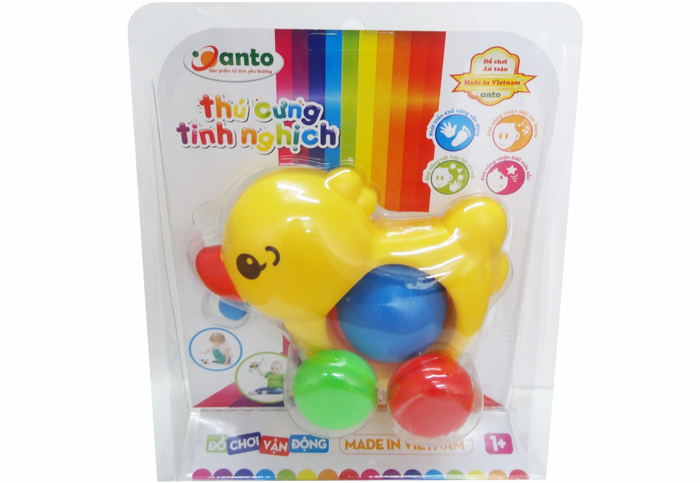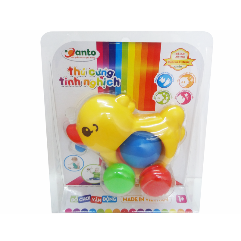 Thú cưng nghịch ngợm - Vịt tồ Anto37 với thiết kế mô phỏng hình chú vịt con dễ thương, bé có thể đẩy hoặc kéo vịt đi chơi quanh nhà. Đồ chơi được làm từ chất liệu nhựa an toàn, có xúc xắc để tạo ra âm thanh vui nhộn. Món quà ý nghĩa dành tặng cho các bé từ 1 tuổi trở lên.