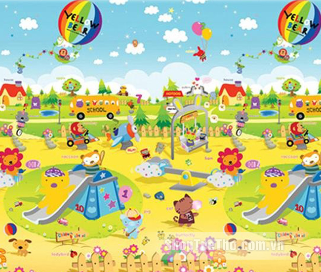 Thảm 2 mặt Cầu Trượt Gấu cho bé.