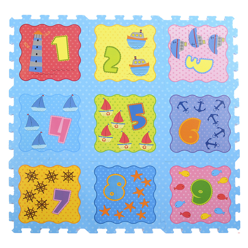 Thảm ghép hình đại dương và số với 9 miếng có màu sắc và họa tiết nổi bật