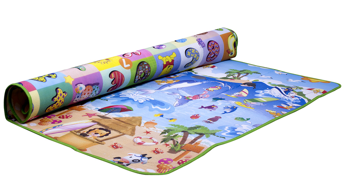 Thảm 2 mặt với họa tiết hoạt hình và màu sắc cho bé phát triển các giác quan