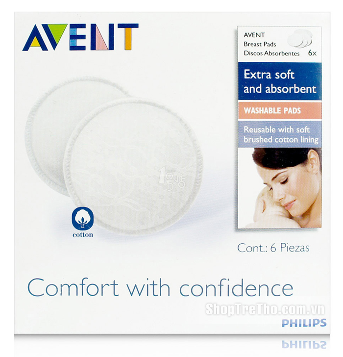 Miếng lót thấm sữa giặt lớp lót bằng vải bông bóng, mềm và nhẹ. Sản phẩm gồm 6 cái/hộp. Sản phẩm mềm, có đường dính kín đáo chống trượt.