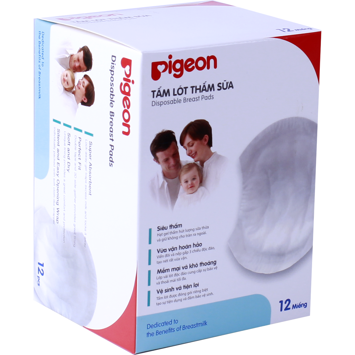 Thấm sữa Pigeon (12 miếng/hộp) dành cho phụ nữ đang trong giai đoạn cho con bú, giúp bạn giữ được vệ sinh, và không bị sữa làm ướt áo. Các lớp vải lót mềm mại với kích thước vừa vặn bảo vệ bầu ngực và thiết kế ôm sát tự nhiên giúp các mẹ cảm nhận được sự thoải mái, sạch sẽ khi sử dụng tấm lót & tiết kiệm được nhiều thời gian để chăm sóc cho bé yêu.