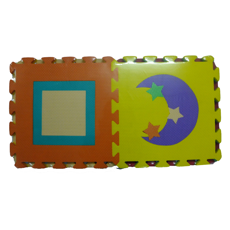 Thảm xốp lót sàn hình học Tân Minh Thoại được trang trí với những họa tiết sinh động như mặt trăng, hình vuông... giống như một cuốn sách thú vị để cho bé nhà bạn học hỏi, khám phá về thế giới xung quanh. Chất liệu xốp mềm, dày 1cm nên có tác dụng tránh cho bé bị đau nếu chẳng may bị ngã khi chơi.