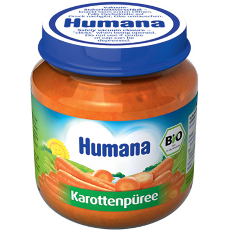 - Thức ăn dinh dưỡng chế biến sẵn Humana đóng trong lọ thủy tinh vệ sinh.