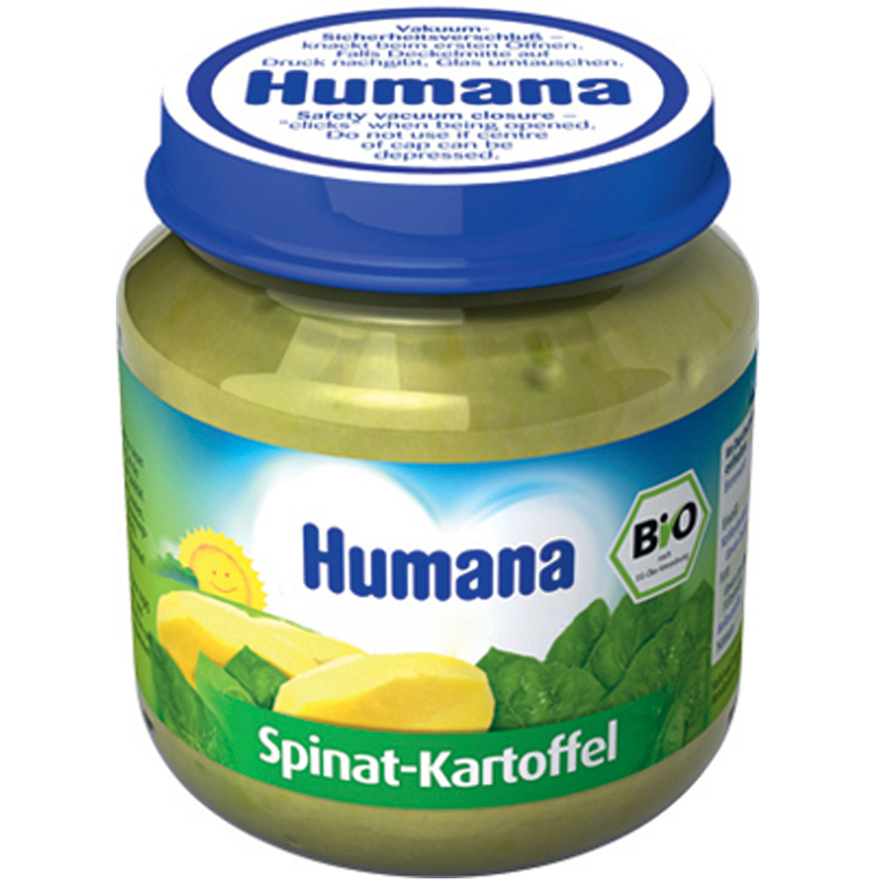 - Thức ăn dinh dưỡng chế biến sẵn Humana đóng trong lọ thủy tinh vệ sinh.