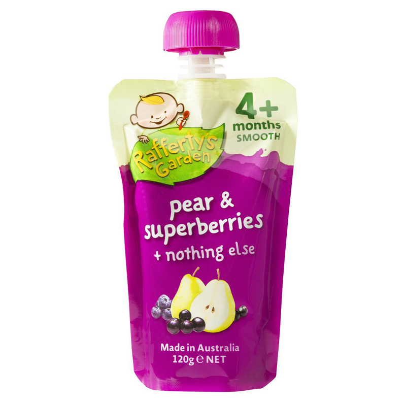 Thức ăn dinh dưỡng Rafferty's Garden - Lê & các loại quả mọng (4m+) được nghiền mịn từ 100% trái cây tự nhiên, sẽ là thực phẩm bổ sung dành cho bé từ 4 tháng trở lên. Đặc biệt, tất cả các nguyên liệu đều đáp ứng tiêu chuẩn Organic, hoàn toàn hữu cơ, thân thiện với môi trường, an toàn cho bé yêu.