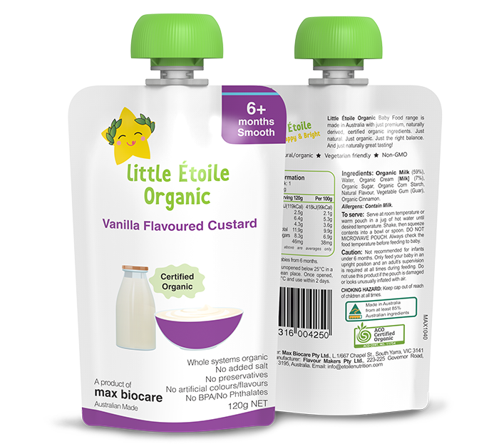 Dinh dưỡng Little Étoile Organic Vanilla Flavoured Custard có thể được sử dụng như một chế độ ăn uống cân bằng