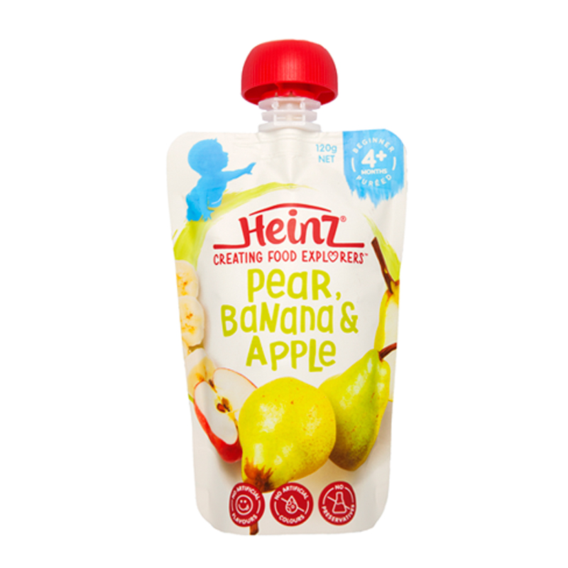 Thực phẩm dinh dưỡng vị lê, chuối và táo Heinz 120g dành cho bé từ 4 tháng tuổi