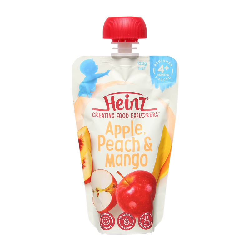 Thực phẩm dinh dưỡng vị táo, đào, xoài Heinz 120g dành cho bé từ 4 tháng tuổi
