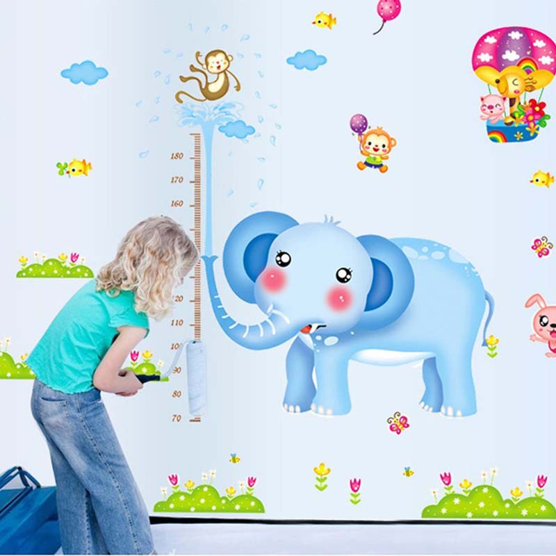 - Có thể dễ dàng bóc hình dán tường Thước đo voi xanh to ra để dán lại sang vị trí khác mà không làm bong tróc bề mặt tường.