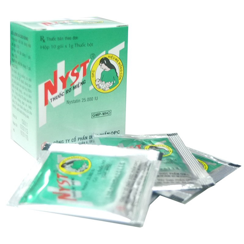 Cốm rơ miệng Nyst là loại thuốc kháng nấm có tác dụng rất tốt, nhất là đối với nấm lưỡi ở trẻ nhỏ. Nystatin chỉ có tác dụng tại chỗ, không hấp thu vào máu nên không có độc và không ảnh hưởng tới sức khỏe trẻ nhỏ. Thuốc rơ miệng Nyst của OPC được bào chế dưới dạng thuốc cốm bột, đóng gói tiện sử dụng.