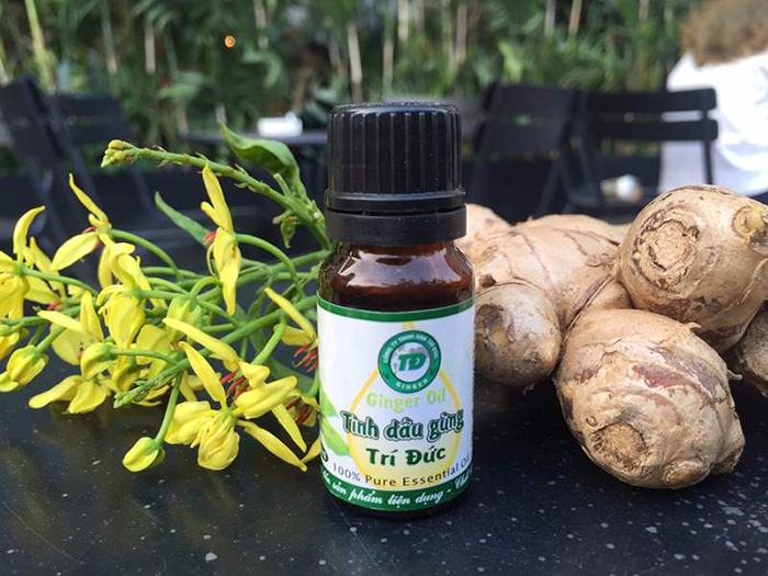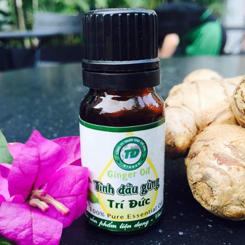Tinh dầu gừng Trí Đức lọ 10ml được chưng cất bằng công nghệ lôi cuốn hơi nước,và xử lý bằng các phương pháp đảm bảo an toàn,chất lượng nhất.
