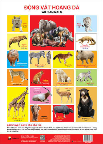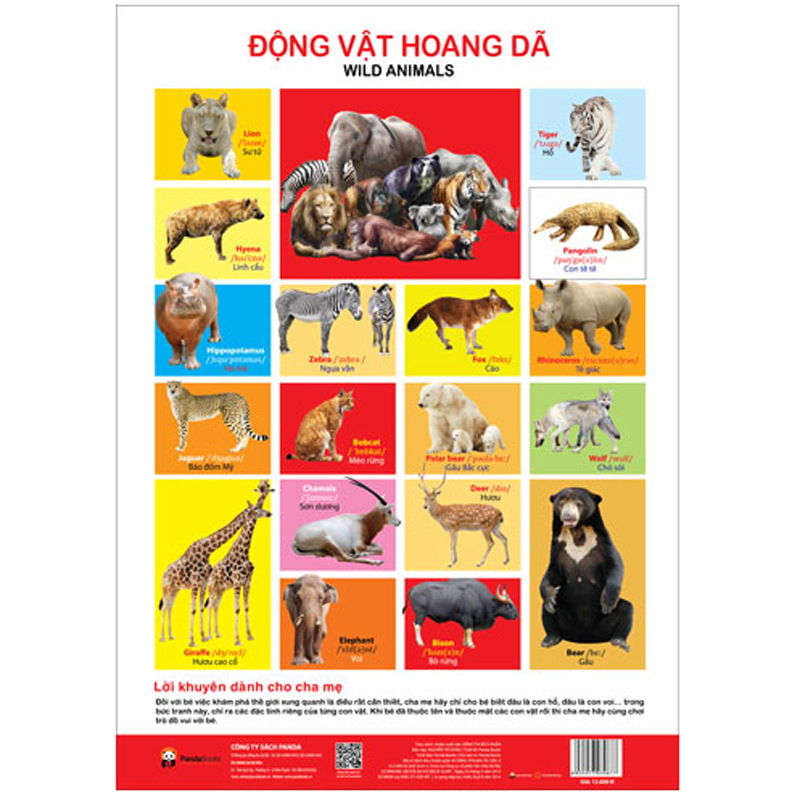 Tờ poster - Chủ đề động vật hoang dã học tiếng Anh bằng hình ảnh lứa tuổi mẫu giáo lớn và đầu tiểu học giúp bé mở rộng vốn hiểu biết và học tiếng Anh ở nhiều chủ đề kiến thức khác nhau.